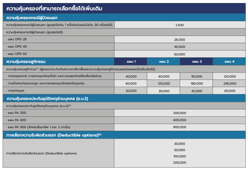 (5)ความคุ้มครองสูติกรรม ผู้เอาประกันภัยต้องสำรองจ่ายล่วงหน้า