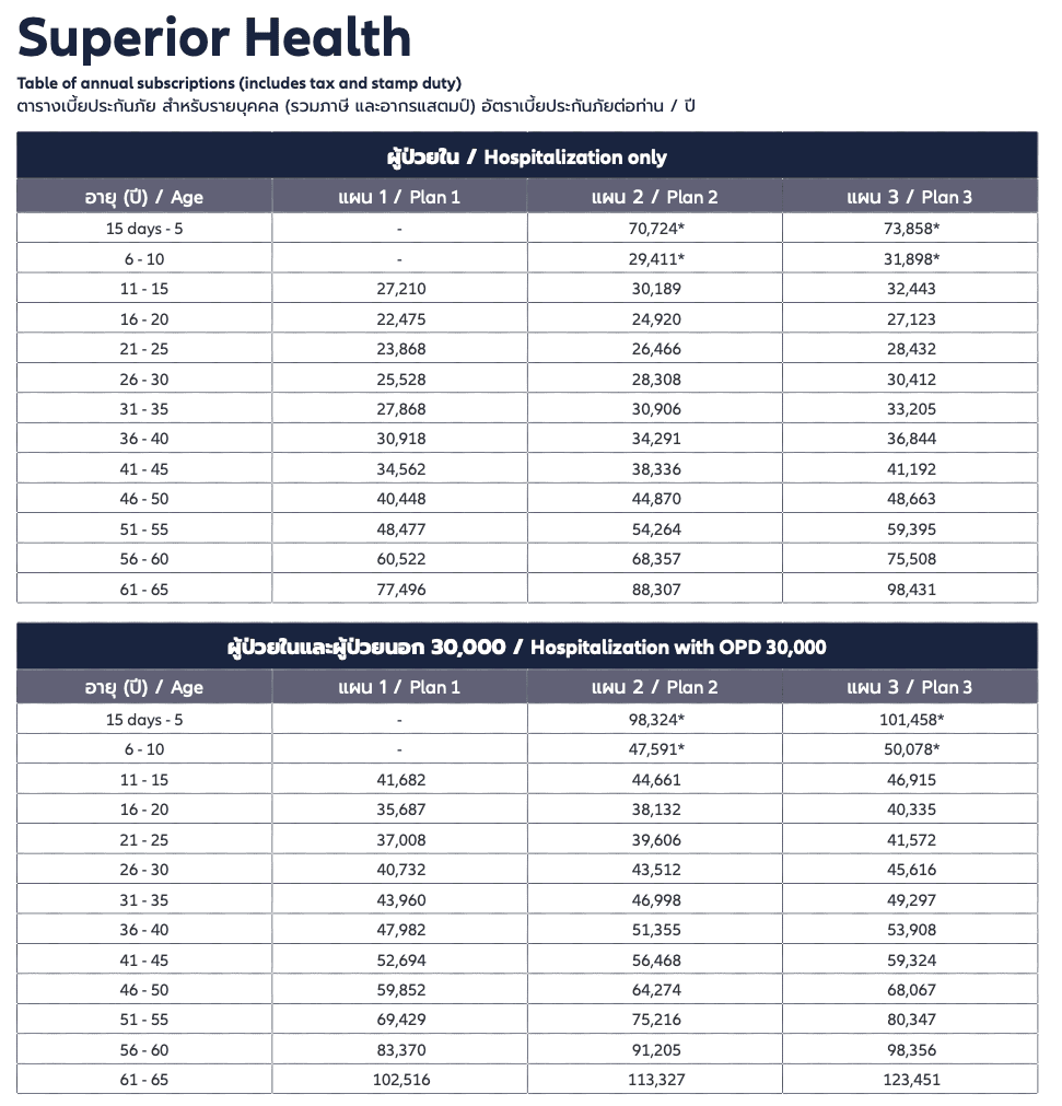 – แผน 2 และ 3 รับประกันภัย ตั้งแต่อายุ 15 วัน – 65 ปีบริบูรณ์