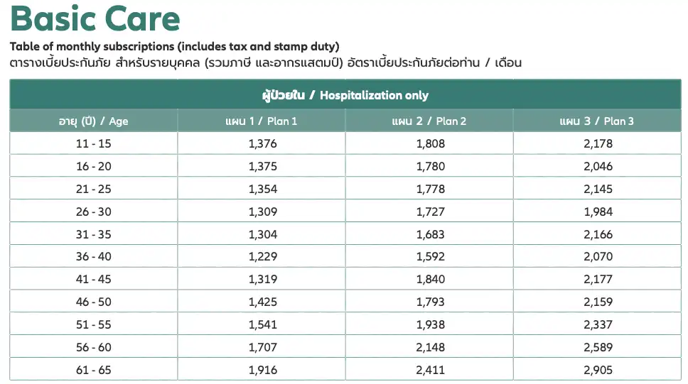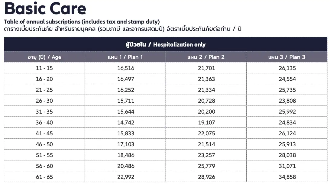 ตัวอย่างเบี้ยประกันสุขภาพ เบสิคแคร์ อลิอันซ์ อยุธยา