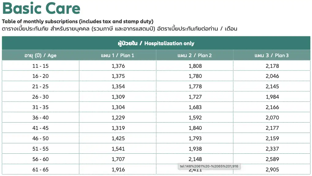 ตัวอย่างเบี้ยประกันสุขภาพ เบสิคแคร์ อลิอันซ์ อยุธยา