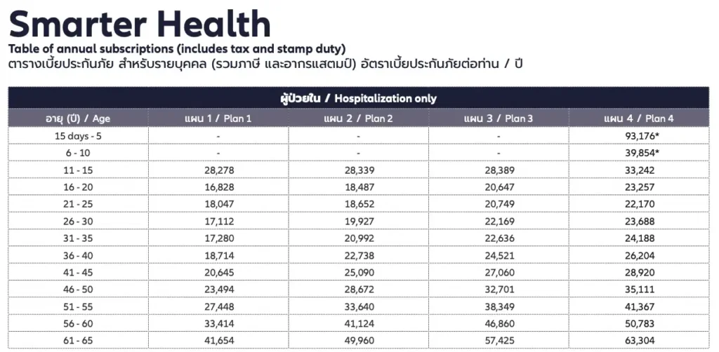 1. รับประกันภัยตั้งแต่อายุ 15 วัน – 65 ปี หากผู้ขอเอาประกันภัยสมัครและทำประกันก่อนอายุ 60 ปีบริบูรณ์ และมีการต่ออายุกรมธรรม์อย่างต่อเนื่อง จะได้รับสิทธิในการต่ออายุกรมธรรม์ตลอดชีพ แต่หากผู้ขอเอาประกันภัยสมัครและทำประกันตั้งแต่อายุ 60 ปีบริบูรณ์ขึ้นไป จะได้รับสิทธิในการต่ออายุกรมธรรม์จนถึงอายุ 80 ปี โดยเงื่อนไขการต่ออายุเป็นไปตามที่กรมธรรม์ประกันภัยกำหนด