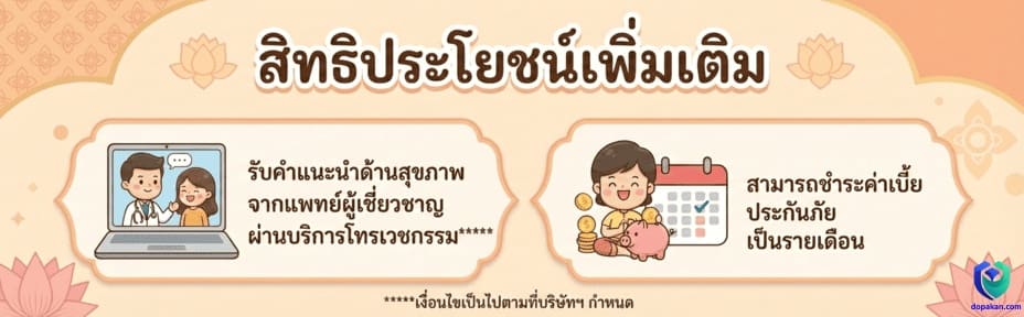 *****เฉพาะผู้ใช้บริการการแพทย์ทางไกล (Telemedicine) ภายในเครือข่ายของบริษัทเท่านั้น โดยติดต่อใช้บริการได้ที่ 026770999 บริษัทสงวนสิทธิ์ในการเปลี่ยนแปลงเงื่อนไขในการให้บริการ โดยไม่ต้องแจ้งให้ทราบล่วงหน้า