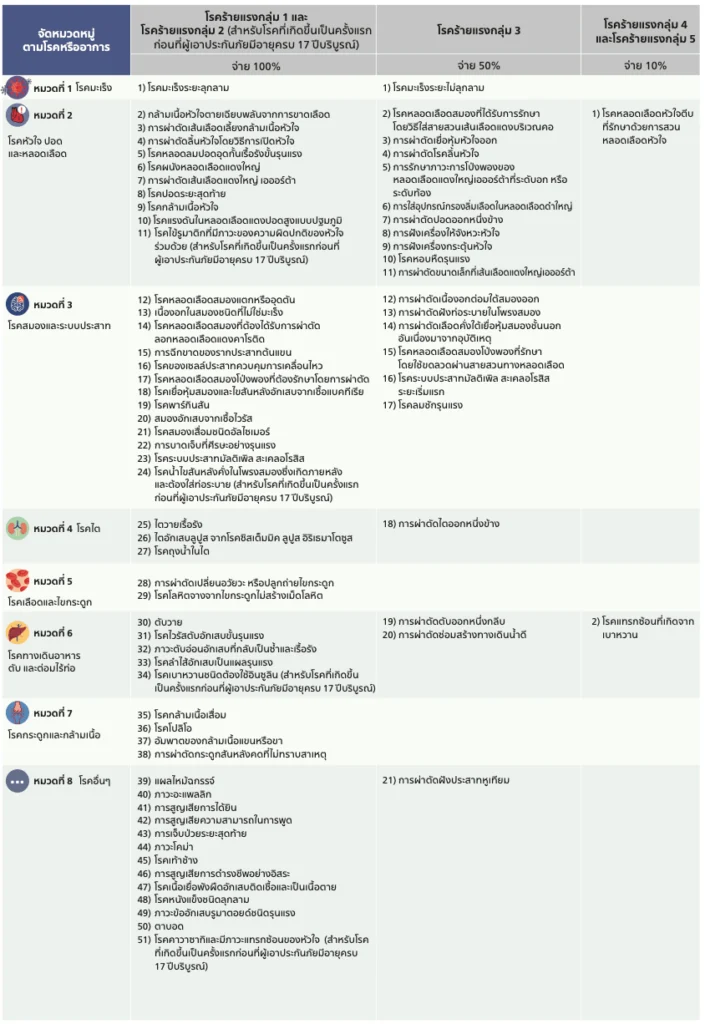 – กรณีเป็นโรคร้ายแรงกลุ่ม 4 รับ 10% | |